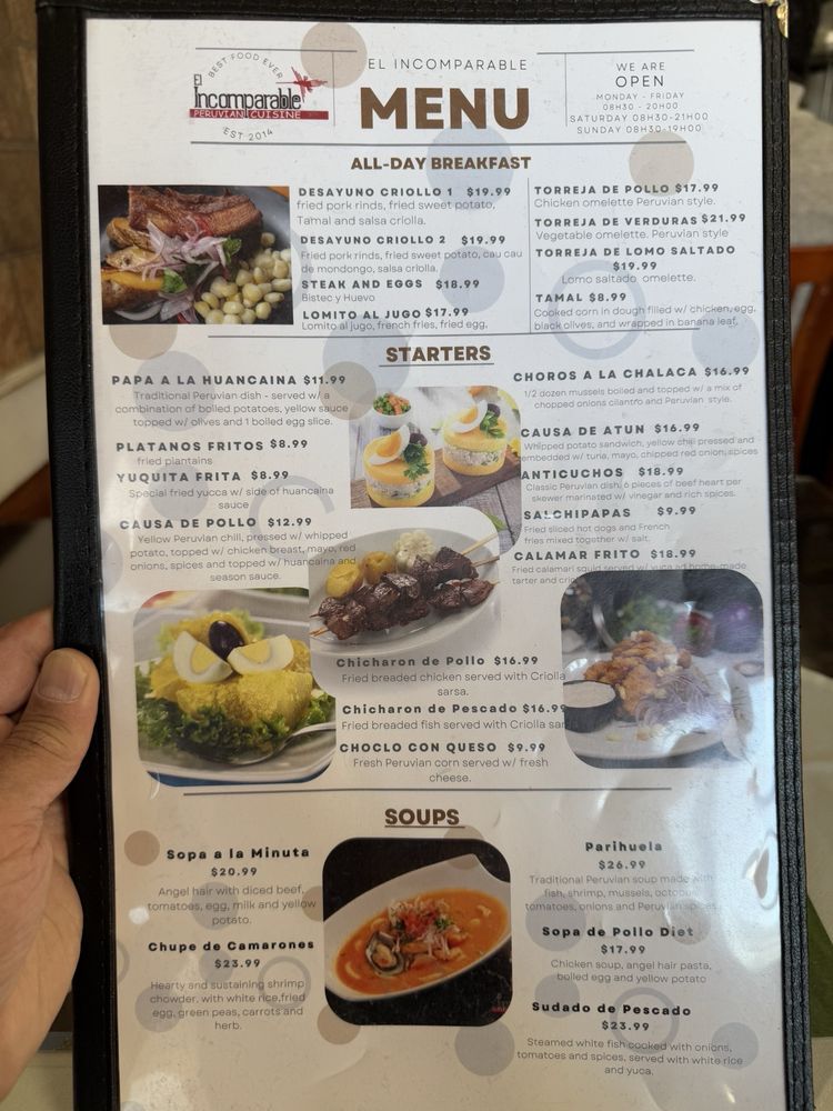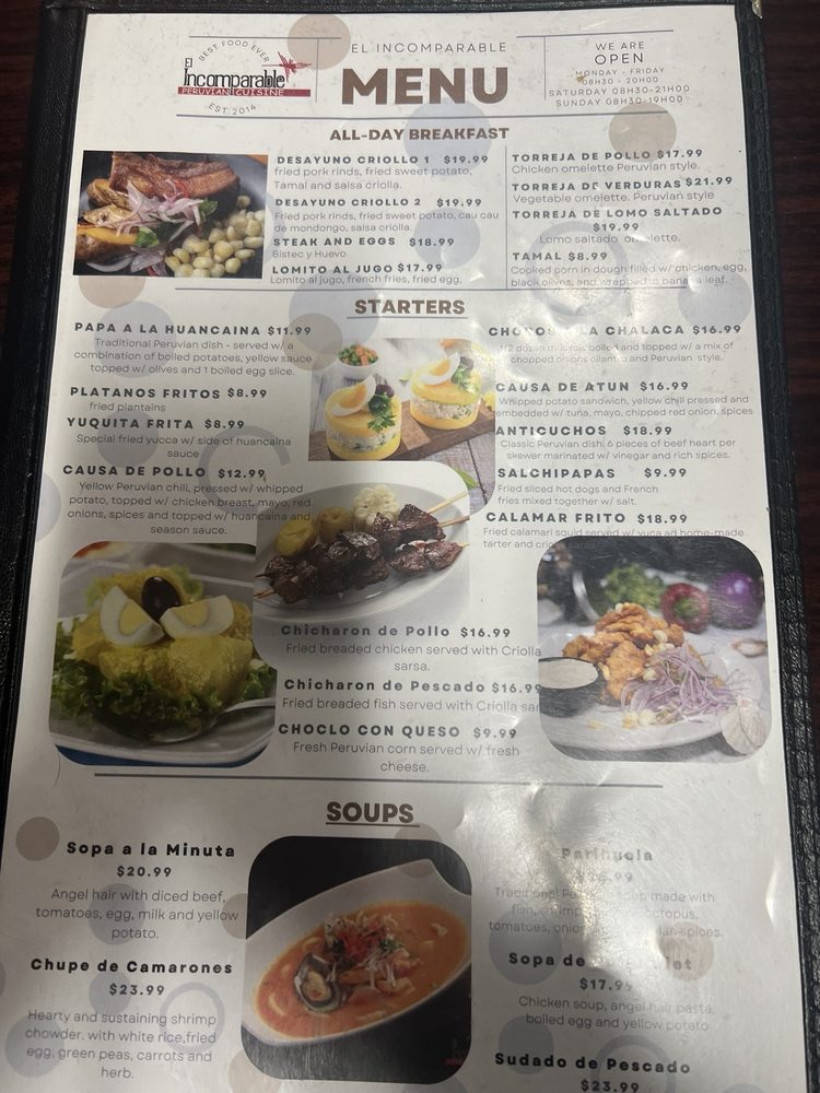 With options for everyone, including many vegetarian dishes and a welcoming atmosphere, El Incomparable is ideal for groups or a casual family meal. Don't miss your chance to savor authentic Peruvian cuisine in a relaxed setting!